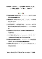 区委社会工作部2025年民主生活会“四个带头”对照查摆剖析材料(含反面典型案例剖析)与县委班子“四个带头”对照检查发言材料(含意识形态)2篇文区委社会工作部2025年民主生活会“四个带头”对照查摆剖析材料(含反面典型案例剖析)按照《关于认真开好2024年度区管领导和党员领导干部民主生活会的通知》(区委组发[2024]93号)要求,区委社会工作部班子紧扣会议主题,深入开展理论学习,广泛征求意见建议,扎实开展谈心谈话,深入查找班子存在的问题,深刻剖析症结根源,进一步明确了努力方向和整改措施。现将班子对照检查情况汇报如下:一、本次民主生活会查摆的主要问题经认真对照检查,共梳理出六个方面12个问题。(...