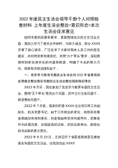 2022年度民主生活会领导干部个人对照检查材料---上年度生活会整改+意识形态+本次生活会征求意见