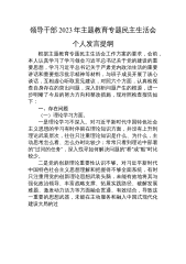 领导干部在2023年主题教育专题民主生活会上对其他班子成员的批评意见(具体案例)同志们: 刚才认真听了大家围绕理论学习、政治素质、能力本领、担当作为、工作作风、廉洁自律等“六个方面”深的个人对照检查发言。结合日常工作实际,为要达到凝心铸魂筑牢根本、锤炼品格强化忠诚、实干担当促进发展、践行宗旨为民造福、廉洁奉公树立新风的目标,按照“批评—团结—批评”的方针,对XX党委(党组)班子成员的同志逐一提出如下批评意见。供大家进一步对照检查参考。 一、对党委(党组)副书记、XX局长(主任)XXX同志2023年主题教育专题民主生活会“六个方面”对照检查的意见建议: 1.对新思想新战略新论断学习有差距。...