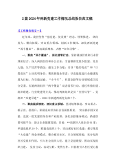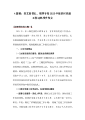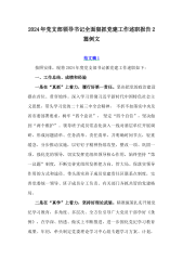 2024年党建总结党建工作开展情况总结报告与党支部书记干部2025年全面抓党建工作述职报告范文稿【各4篇】供借鉴