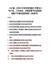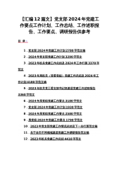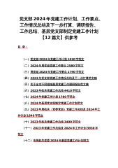 党支部2024年党建工作计划、工作要点、工作情况总结及下一步打算、调研报告、工作总结、工作述职报告、基层党支部制定党建工作计划【共11篇】供参考