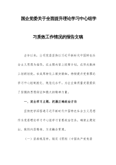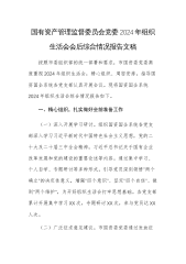 国有资产管理监督委员会党委2024年组织生活会会后综合情况报告文稿按照市委组织部的统一部署和要求,市国资委党委高度重视2024年组织生活会,精心组织、周密安排,指导国资国企系统各党支部认真开展会议。现将国资国企系统2024年组织生活会综合情况报告如下。一、精心组织,扎实做好会前准备工作(一)深入开展学习研讨。组织国资国企系统各党支部深入学习习近平新时代中国特色社会主义思想,党的二十大及二十届三中全会精神,习近平总书记关于国有企业改革发展和党的建设的重要论述等内容。通过集中学习、个人自学、专题研讨等多种形式,引导党员深刻领悟"两个确立"的决定性意义,增强"四个意识"、坚定"四个自信"、做到"两个...