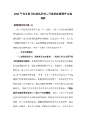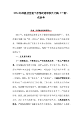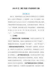 【汇编8篇】2025年党支部书记抓党建工作述职报告与党建总结党建工作开展情况总结报告文稿【工作述职报告范文稿一】一年来,在党委的坚强领导下,我认真履行XX处党支部抓党建和全面从严治党“第一责任人”职责,带领支部全体党员坚决落实上级决策部署,强化政治建设、组织建设、队伍建设,着力提升队伍凝聚力和战斗力,为推动全局中心工作和队伍发展发挥积极作用。现就2024年度抓党建工作述职如下。突出政治统领,凝心铸魂,不断提升党支部向心力。一是全面推进党纪学习教育。XX处党支部立足主责主业,将学习好、组织好、服务好党纪学习教育作为支部头等大事,积极发挥主题教育办统筹协调作用,压实责任、分类指导、一体推进理论学习...