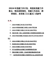 2024年党建工作计划、局党组党建工作要点、情况述职报告、党建工作总结、调研报告、发言稿【11篇文】供参考