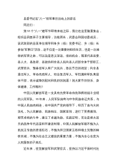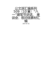 仅限学习交流,请勿抄袭和出售—1—“八一”建军节相关素材汇编目录一、座谈会讲话庆“八一”退役军人座谈会讲话1....................................3庆“八一”退役军人座谈会讲话2....................................8庆“八一”退役军人座谈会讲话3.................................11庆“八一”退役军人座谈会讲话4.................................15二、退役军人代表发言退役军人代表座谈会发言1......................................
