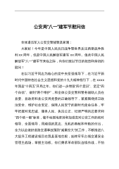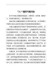 “八一”建军节座谈会主持词同志们:在中国人民解放军建军☆周年来临之际,市局党组在这里举行座谈会,大家欢聚一堂,共庆建军节,这对于进一步发扬军队的优良传统和作风,弘扬军人的爱国奉献精神,支持和促进工商事业实现持续发展起到积极作用。参加今天座谈会的有市局党组成员,市局机关工作的☆多名复转军人。座谈会共有二项议程,下面依次进行。首先进行第一项:请市局党组书记、局长致词。大家欢迎!……………………下面进行第二项:请复转军人代表发言。……同志们,今天我们在繁忙的工作之中,抽出时间召开复转军人座谈会,体现了市局党组对我们复转军人的关心。刚才,☆局长代表市局党组进行了热情洋溢的讲话,高度概括了军人一往无前英...