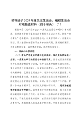 2024年度组织生活会个人对照检查材料(四个带头+上年度整改)(1)根据xx有关要求,我紧紧围绕本次组织生活会主题,结合自身实际情况,认真对照“四个带头”,全面深入查摆了自身存在的突出问题,认真分析了问题产生的原因,逐项明确了下一步整改措施。按照会议安排,现将个人对照检查情况汇报如下。一、上年度查摆问题整改落实情况在2023年度组织生活会上,我共查摆问题8条,并制定了“问题清单”,配套“整改方案”,确保条条有整改、项项见实效。经过一年来的持续整改,目前已全部完成,并取得了一定成效。在理论学习方面,我制定了“学习路线图”,坚持每日学习习近平新时代中国特色社会主义思想,把“碎片学”变为“体系学”,...