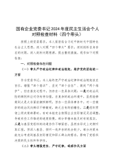 乡镇党委副书记2024年度民主生活会个人对照检查材料按照市委、区委关于认真开好2024年度党员领导干部民主生活会的通知要求,我认真学习了党的二十届三中全会《决定》、习近平总书记重要讲话重要指示精神,系统研读党章、《中国共产党纪律处分条例》等党内法规,深刻领会进一步全面深化改革的重大意义和战略部署,并围绕6个方面开展个人对照检查,联系自身工作实际,主动查摆不足和差距,深刻剖析根源,制定整改措施。现将对照检查情况报告如下:一、问题查摆(一)带头严守政治纪律和政治规矩,维护党的团结统一方面。一是理论学习深度不够。对习近平总书记关于坚持和完善中国特色社会主义制度重要思想,党纪党规等方面的学习、理解、把...