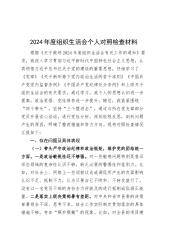 街道办事处副主任2024年度民主生活会、组织生活会“四个带头”个人对照检查材料(1)按照xx街道2024年度民主生活会的统一安排与部署,我深入、系统、全面地学习领会了习近平新时代中国特色社会主义思想、党的二十届三中全会精神等重要内容。通过扎实开展谈心谈话,广泛收集意见建议,我紧扣四个方面的主题,紧密结合自身思想、工作和生活实际,仔细查摆问题,深刻挖掘根源,精心制定具体的整改措施,现将对照检查情况汇报如下:一、存在的问题(一)带头严守政治纪律和政治规矩,维护党的团结统一方面。一是理论学习深度不足。在日常工作中,尽管能够依照街道党工委的具体安排,主动参与各类学习活动,包括按时参加党组理论中心组学习...