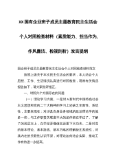 XX国有企业班子成员主题教育民主生活会个人对照检查材料(素质能力、担当作为、作风廉洁、检视剖析)发言提纲