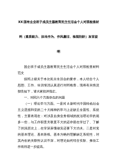 XX国有企业班子成员主题教育民主生活会个人对照检查材料(素质能力、担当作为、作风廉洁、检视剖析)发言提纲国企班子成员主题教育民主生活会个人对照检查材料范文按照上级关于本次民主生活会的要求,本人结合个人思想、工作、生活情况认真进行对照检查,现将有关情况报告如下,请大家批评指正。一、对照六个方面存在的问题(一)理论学习方面。一是对A新时代中国特色社会主义思想和党的二十大精神的学习上还缺乏全面性、系统性,主要表现在:对涉及自身业务领域的政治理论学的就多一些,与工作职责关联度不大的还停留在学过了、了解了的浅层次上,在学深弄懂做实还要下大功夫。二是对党的基本理论、基本路线、基本方略的理解缺乏系统性,对其...