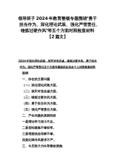 2024年深化理论武装、筑牢对党忠诚、锻炼过硬作风等五个方面专题组织生活会个人对照检查材料与纪检监察干部主题教育暨教育整顿专题组织生活会对照检查材料发言提纲【两篇文】2024年深化理论武装、筑牢对党忠诚、锻炼过硬作风、勇于担当作为、强化严管责任五个方面专题组织生活会个人对照检查材料提纲一、存在的主要问题(一)深化理论武装方面。(二)筑牢对党忠诚方面。(三)锻炼过硬作风方面。(四)勇于担当作为方面。(五)强化严管责任方面。二、产生问题的原因剖析一是理论学习用力不足。二是党性锻炼不够经常。三是理想信念培树不够。四是纪律作风要求不严。三、今后努力方向和整改措施(一)在理论武装上再加强。(二)在提振精...