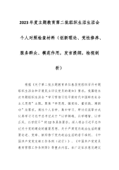 (2篇)第二批2023年度主题教育组织生活会个人对照检查材料(创新理论、党性修养、服务群众、模范作用,发言稿提纲,检视剖析对照检查)