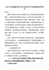 2023年主题教育民主生活会班子对照检查材料范文同志们:根据学习贯彻A新时代中国特色社会主义思想主题教育总体安排部署,今天我们召开专题民主生活会。本次民主生活会的主题是:学习贯彻A新时代中国特色社会主义思想,聚焦学思想、强党性、重实践、建新功总要求,对照凝心铸魂筑牢根本、锤炼品格强化忠诚、实干担当促进发展、践行宗旨为民造福、廉洁奉公树立新风具体目标,深入学习领悟以学铸魂、以学增智、以学正风、以学促干的丰富内涵和实践要求,通过开展批评和自我批评,检视问题抓好整改,推动形成统一思想、统一意志、统一行动,坚定拥护“两个确立”、坚决做到“两个维护”。会前,党委班子深入开展理论学习和谈心交流,以直面问题...