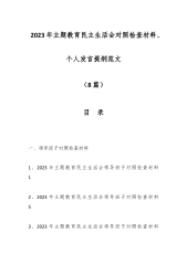 班子2023年度主题教育专题民主生活会对照检查材料42篇第二批主题教育专题民主生活会领导班子对照检查剖析材料篇一根据关于组织召开2023年度专题民主生活会的工作安排,班子坚持用新时代中国特色社会主义思想凝心铸魂,聚焦“学思想、强党性、重实践、建新功”的总要求,会前认真组织学习了党的二十大报告、党章、《著作选读》等内容,进一步树牢‘四个意识’,坚定‘四个自信’,坚决做到‘两个维护,加强了对本次专题民主生活会主题和内涵的把握。同时,通过召开座谈会、谈心谈话等形式广泛征求意见建议,并对照关于严肃党内政治生活的重要指示精神,紧紧围绕理论学习、政治素质、能力本领、担当作为、工作作风、廉洁自律等六个方面具...