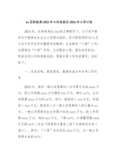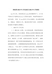 xx区财政局2023年工作总结及2024年工作计划2023年,区财政局在xxx的正确领导下,以习近平新时代中国特色社会主义思想为指导,学习贯彻党的XX大及习近平总书记系列重要讲话精神,扎实做好“六稳”工作,全面落实“六保”任务,主动服务大局,强化责任担当,财政各项工作取得新成效,现就主要工作完成情况,总结如下。一、攻坚克难,狠抓落实,圆满完成全年各项工作任务2023年,我区一般公共预算收入全年累计完成xxxx万元,较上年同期xxxx万元增收xxx万元,增长xx%,占年初预算xxxx万元的xx%,其中:税收收入xxx万元,非税收入xxx万元,税收收入占一般公共预算收入的比重为xx%。一般公共预算...