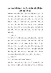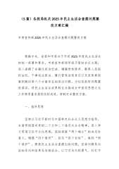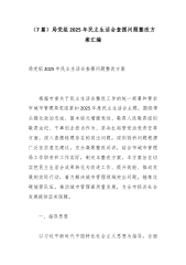 某某局党组2025年度民主生活会查摆问题整改落实方案(精品)2025年度党员领导干部民主生活会召开后,局党组高度重视,坚持以刀刃向内的自我革命精神,认真梳理会上查摆的各类问题,深刻剖析根源,研究制定本整改落实方案。全体班子成员以强烈的政治责任感和使命担当,切实把后半篇文章做细做实,确保查摆问题得到彻底整改、举一反三、防止反弹。一、总体要求以习近平新时代中国特色社会主义思想为指导,全面贯彻落实党的二十届四中全会精神,严格对照中央八项规定及其实施细则精神,深入贯彻中办印发的关于在全党开展树立和践行正确政绩观学习教育的通知要求,坚持问题导向、目标导向、结果导向,对民主生活会查摆的每一个问题,逐条研究...