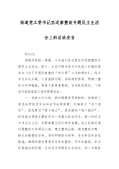 街道党工委书记在2024年巡察整改专题民主生活会上的总结发言同志们:按照市委统一部署,今天我们在这里召开2024年巡察整改专题民主生活会。刚才,大家对照市委关于巡察工作整改要求和《关于开展巡察整改“回头看”工作的通知》,结合本次会议主题,认真查摆问题、深刻剖析原因,明确了整改方向和措施。希望大家高度重视,切实抓好落实。下面,我代表街道党工委作简要总结。一、坚持立行立改,把问题整改贯穿始终。街道党工委坚决贯彻党中央和省市决策部署,牢固树立“四个意识”,坚定捍卫“两个确立”,坚决做到“两个维护”,把巡察反馈意见整改作为一项重大政治任务,第一时间召开书记办公会、专题部署会进行研究部署,成立巡察反馈问...