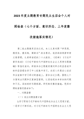 2023年度主题教育专题民主生活会个人对照检查(七个方面、意识形态、上年度整改措施落实情况)