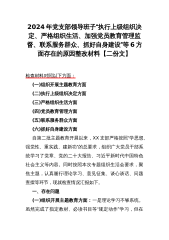 2024年支部班子“组织开展教育、抓好自身建设、执行上级组织决定、严格组织生活、加强党员教育管理监督、联系服务群众”等几方面存在的原因整改材料2份文