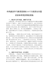 作风建设深入贯彻中央八项规定精神学习教育查摆的10个方面突出问题的具体表现及整改措施