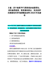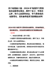 四个检视稿2篇:2024年“检视学习贯彻党的创新理论情况,看学了多少、学得怎样,有什么收获和体会、学习贯彻党的创新理论、党性修养提高”查摆整改材料