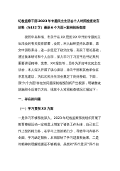 纪检监察干部2023年专题民主生活会个人对照检查发言材料(5432字)最新6个方面+案例剖析查摆按照中央和省、市关于在XX思想XX中开好专题民主生活会的有关安排部署,会前,本人始终坚持从原著、原文中汲取养分,进一步坚定了政治立场,夯实了理论基础,通过集体研讨和个人自学,深入学习了习近平总书记系列重要讲话精神、党章、XX报告等,另外为开好本次民主生活会,本人深入开展了谈心谈话,并向干部和其他单位征求意见建议,为此次民主生活会奠定了良好基础。下面,我“六个方面”存在的问题深刻检视剖析产生根源,明确整改措施和今后努力方向。现将个人对照检查情况汇报如下:一、存在的问题(一)学习贯彻XX方面一是学习不够...