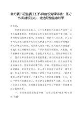 区纪委书记监委主任作风建设党课讲稿:坚守作风建设初心,锻造纪检监察铁军同志们:作风建设永远在路上,这不仅是新时代全面从严治党一以贯之的重要要求,更是深深烙印在我们纪检监察干部心间、必须始终铭记的神圣使命。回顾过往,党的十八大以来,以习近平同志为核心的党中央从制定和落实中央八项规定开局破题,持之以恒正风肃纪,党风政风为之一新,社风民风持续向好。但我们也应清醒地认识到,作风问题具有顽固性、反复性,稍有松懈便可能反弹回潮。在新的历史起点上,国际形势风云变幻,国内改革发展稳定任务艰巨繁重,我们纪检监察干部面临着前所未有的复杂形势与更加艰巨的使命任务。在这场没有硝烟的战斗中,唯有淬炼过硬作风,将每一项监...