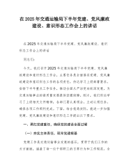 在局党组2025年上半年全面从严治党和党风廉政建设形势分析会上的讲话同志们:今天,我们召开2025年上半年全面从严治党和党风廉政建设形势分析会,这既是一次阶段工作的总结盘点,更是一次明确方向、加压奋进的重要部署会。今年是全面贯彻党的二十大和二十届二中、三中全会精神的重要一年,也是深入落实总书记考察山东重要讲话精神的关键之年,我们的工作开展得如何,全面从严治党成效怎样,直接关系到全省数据事业发展的大局。接下来,我将围绕上半年工作情况和下半年重点任务,谈几点意见。一、上半年工作回顾今年以来,局党组始终坚持以新时代中国特色社会主义思想为指导,把政治建设摆在首位,以踏石留印、抓铁有痕的劲头推进全面从严...
