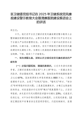 区卫健委党组书记在2025年卫健系统党风廉政建设警示教育大会暨清廉医院建设推进会上的讲话