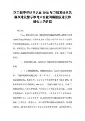 区卫健委党组书记在2025年卫健系统党风廉政建设警示教育大会暨清廉医院建设推进会上的讲话