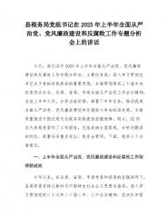 县税务局党组书记在2025年上半年全面从严治党、党风廉政建设和反腐败工作专题分析会上的讲话今天,我们召开2025年上半年全面从严治党、党风廉政建设和反腐败工作专题分析会,主要任务是:深入学习贯彻总书记关于党的自我革命的重要思想,全面贯彻落实二十届中央纪委四次全会、总局、省局、市局全面从严治党工作会议精神,总结上半年工作,分析当前形势,部署下半年任务,推动我局全面从严治党、党风廉政建设和反腐败斗争向纵深发展,为高质量推进中国式现代化税务实践提供坚强保障。刚才,XX同志代表局党委作了工作报告,总结成绩全面客观,分析问题深刻到位,部署任务重点突出,我完全赞同。下面,我讲三个方面意见。一、上半年全面从...