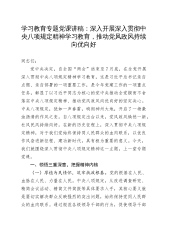 学习教育专题党课讲稿:深入开展作风建设深入贯彻中央八项规定精神学习教育,推动党风政风持续向优向好20250425