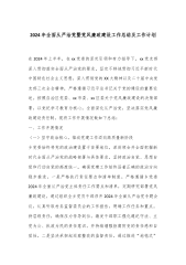 2024年上半年全面从严治党暨党风廉政建设工作总结及工作计划