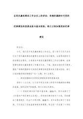 在党风廉政建设工作会议上的讲话:准确把握新时代党的纪律建设的显著成效与基本经验,持之以恒加强党的纪律建设 同志们: 今天,我们召开党风廉政建设工作会议,深入学习习近平总书记关于党风廉政建设的重要论述和指示批示精神,全面贯彻新时代党的建设总要求,认真落实市委党风廉政建设工作会议精神,安排部署近期党风廉政建设工作重点任务。下面,我结合党纪学习教育,围绕“准确把握新时代党的纪律建设的显著成效与基本经验,持之以恒加强党的纪律建设”这一主题,讲三点意见。 一、深刻把握新时代党的纪律建设取得的显著成效 党的十八大以来,以习近平同志为核心的党中央强调把纪律挺在前面,始终坚持严的基调,持之以恒正风肃纪...