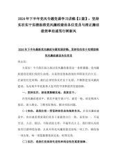 2024年下半年党风廉政专题党课学习讲稿【2篇】:坚持不断推进党风廉政建设为实现中华民族伟大复兴的中国梦提供坚强保障与坚持实在实干实绩助推党风廉政建设各位党员
