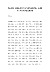 在XX镇党风廉政建设工作推进会议上的讲话(精品)同志们:今天,我们在这里召开全镇党风廉政建设工作推进会议,主要任务是深入学习贯彻习近平总书记关于党的自我革命的重要思想,全面落实中央、省、市、县纪委全会精神,总结过去一年的工作,分析当前面临的形势,安排部署2026年我镇党风廉政建设和反腐败工作。刚才,我们集中学习了相关重要论述和会议精神,这为我们接下来的工作指明了方向、提供了根本遵循。下面,我讲四点意见。一、认清形势任务,始终保持永远在路上的战略定力回顾过去的一年,在县委、县政府的坚强领导下,我镇党委坚决扛起管党治党政治责任,团结带领全镇广大党员干部,以正风肃纪反腐-的高压态势,推动全面从严治党...