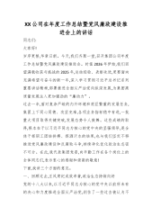 XX公司在年度工作总结暨党风廉政建设推进会上的讲话
