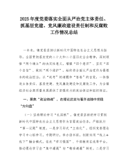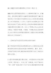 XX县人民检察院2025年度党风廉政建设工作总结(精品)2025年,在县委和上级检察机关的坚强领导下,在县纪委监委派驻纪检监察组的有力监督下,我院坚持以习近平新时代中国特色社会主义思想为指导,深入学习贯彻党的二十大及二十届历次全会精神,深刻领悟“两个确立”的决定性意义,增强“四个意识”、坚定“四个自信”、做到“两个维护”,始终将党风廉政建设和反腐败工作作为一项重大政治任务,与检察业务工作同部署、同落实、同检查、同考核,纵深推进全面从严管党治检,为XX检察工作高质量发展提供了坚实的纪律保障。现将全年工作情况总结如下:一、坚持政治引领,全面压实管党治检主体责任我院始终将党的政治建设摆在首位,确保检...