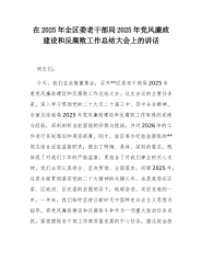 在XX区委老干部局2025年党风廉政建设和反腐败工作总结大会上的讲话(精品)同志们:今天,我们在此隆重集会,召开XX区委老干部局2025年度党风廉政建设和反腐败工作总结大会。这次会议的主要任务是,深入学习贯彻党的二十大及二十届三中、四中全会精神,全面总结我局2025年党风廉政建设和反腐败工作取得的成绩与经验,深刻剖析当前面临的形势与挑战,并对2026年的工作进行系统谋划和周密部署。刚才,驻区委办纪检监察组的XX同志结合派驻监督职责,提出了明确、具体、深刻的要求,既体现了对我们工作的严格监督,更饱含了对我们事业的关心支持,我们必须认真领会、坚决贯彻、全面落实。回顾2025年,这是全面贯彻落实党的...