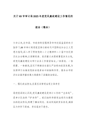 关于XX市审计局2025年度党风廉政建设工作情况的报告(精品)