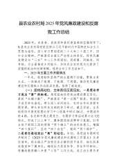 XX县农业农村局2025年党风廉政建设和反腐败工作总结 2025年,在县委、县政府和县纪委监委的坚强领导下,XX县农业农村局党组坚持以习近平新时代中国特色社会主义思想为指导,深入学习贯彻党的二十大和二十届三中、四中全会精神,严格落实全面从严治党主体责任,将党风廉政建设与“三农”中心工作同谋划、同部署、同推进、同考核,为全面推进乡村振兴、加快农业农村现代化提供了坚强的政治和纪律保障。现将全年工作总结如下。 一、2025年主要工作开展情况 一年来,我局始终坚持严的主基调不动摇,聚焦主责主业,一体推进不敢腐、不能腐、不想腐,推动党风廉政建设和反腐败工作向纵深发展,取得了新成效。 (一)坚持高...