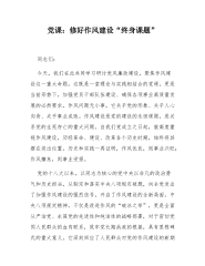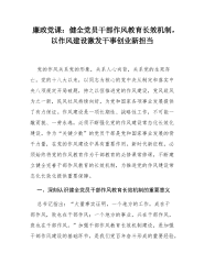 廉政党课:健全党员干部作风教育长效机制,以作风建设激发干事创业新担当
