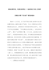 淬炼过硬作风,巩固长效常态——组织部关于深入开展作风建设专题“回头看”情况的报告党的十八大以来,以习近平同志为核心的党中央以坚如磐石的决心推进全面从严治党,中央八项规定成为作风建设的金色名片,深刻改变了党风政风和社会风气。习近平总书记反复强调,“作风建设永远在路上,永远没有休止符”,要求“必须常抓不懈、久久为功,直至真正化风成俗”。市委组织部深刻认识到,作风建设是党的建设的重要内容,是关系党同人民群众血肉联系的关键举措。开展作风建设专题“回头看”,是巩固拓展学习贯彻习近平新时代中国特色社会主义思想主题教育成果、推动作风建设常态长效的内在要求,对于锻造忠诚干净担当的高素质干部队伍具有重大意义。我...