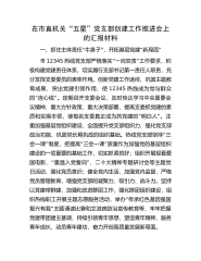 在市直机关“五星”党支部创建工作推进会上的汇报材料“”“”一、抓住主体责任牛鼻子,开拓基层党建新局面市12345“”热线党支部严格落实一岗双责工作要求,积极构建党建责任体系,切实履行支部书记第一责任人职责,充分发挥支委委员的表率作用。创新党建工作途径,巩固主题教育成果,突出党建引领作用,使12345热线成为党与群众“”的连心线。定期召开支委会议,及时传达学习中央重要会议精神、重大方针政策、重大决策部署,提高支委抓党建的素“”质和实操本领,使每名支委真正成为抓党建的明白人。注重加强基层党组织建设,全面提升党支部组织力,强化党支部“政治功能,巩固党长期执政的组织基础。热线党支部坚持三”“”会一课制...