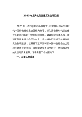 2023年工作总结:长城乡2023年基层党建工作汇报一年来,在县委、政府的正确领导下,长城乡党委坚持以党的XX大精神及习近平新时代中国特色社会主义思想为指导,认真贯彻落实党中央及省、州、县组织工作部署和要求,以党建为引领,充分发挥党委的政治和领导作用,不断加强基层党组织班子和党员队伍建设,有力提升基层党建工作水平,推动基层党建工作全面进步,全面过硬。一、2023年工作开展情况(一)加强党的领导,把稳政治方向不走偏。乡党委坚持和加强党的全面领导,充分发挥“把方向、管大局、保落实”的领导作用,以高质量党建引领高质量发展。一是坚持理论中心组学习制度和第一议题制度,制定学习计划。严格落实“第一议题”制...