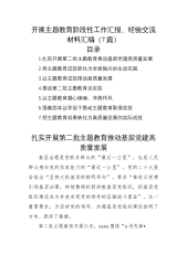 开展主题教育阶段性工作汇报、经验交流材料汇编(7篇)目录1.扎实开展第二批主题教育推动基层党建高质量发展2.将主题教育成效转化为全面振兴的生动实践3.以主题教育成效推动高质量发展4.推动第二批主题教育见实效5.以主题教育凝心铸魂、淬炼作风6.强基固本以学促干推动主题教育取得实效7.把主题教育成果转化为高质量发展的实际成效扎实开展第二批主题教育推动基层党建高质量发展基层治理是党联系群众的“最后一公里”,也是人民群众感知党的执政能力的“最近一公里”。党的二十大报告指出“坚持大抓基层的鲜明导向”,要求“推进以党建引领基层治理,持续整顿软弱涣散基层党组织,把基层党组织建设成为有效实现党的领导的坚强战斗...