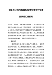党组书记党风廉政建设述责述廉报告暨廉政谈话汇报材料2022年,在市委、市政府的坚强领导下,我坚持以习近平新时代中国特色社会主义思想为指导,全面贯彻落实党的XX大精神,坚决贯彻坚定不移全面从严治党战略部署,认真落实健全全面从严治党体系任务要求,深入开展党风廉政建设和反腐败斗争,为全市××事业健康向上发展提供坚强的政治和纪律保障。现将工作情况报告如下:一、履职情况(一)提高政治站位,履行全面从严治党责任。一是坚持全面从严治党。深入贯彻上级党委关于党建工作的要求,全面分析党建工作面临的形势和任务,制定2022年工作要点以及意识形态工作责任清单,明确镇领导班子、领导干部的意识形态工作责任,并由党组牵头...