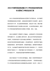 2023年教育系统推进建立中小学校党组织领导的校长负责制工作情况总结汇报与中小学党组织领导下的校长负责制实施方案、实施细则【两篇文】2023年教育系统推进建立中小学校党组织领导的校长负责制工作情况总结汇报自中小学校党组织领导的校长负责制工作开展以来,XX区教育局党委根据各级文件精神,全面加强党对教育工作的领导,健全完善全区各中小学、幼儿园管理体制机制,强化四个方面,紧扣市教育局党委落实此项工作的重点任务清单,主动对照各项条款,推进中小学校党组织领导的校长负责制工作落细、落实、见效。强化“全面领导”与“围绕中心”相融合:全面加强中小学校党的领导和党建工作,以立德树人根本任务,建立全区学校同步推进...