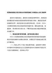 区委组织部机关党支部在全市基层党建工作推进会上的汇报材料党的XX大报告指出,要坚持大抓基层的鲜明导向,把基层党组织建设成为有效实现党的领导的坚强战斗堡垒,激励党员发挥先锋模范作用,保持党员队伍先进性和纯洁性。近年来,中共××区委组织部机关党支部始终坚持党建引领,聚焦选贤任能、强基固本、育才聚才的主责主业,不断深化政治机关建设和模范机关创建工作。一、强化政治统“领”抓党建,提升政治机关意识中共××区委组织部机关党支部始终坚持把培植对党的感情坚定对党的信赖作为首要任务来抓,所属党员干部的政治机关意识不断强化。(一)内容上用“三个纳入”炼化看齐纯度。始终把学习贯彻XXX新时代中国特色社会主义思想和党...